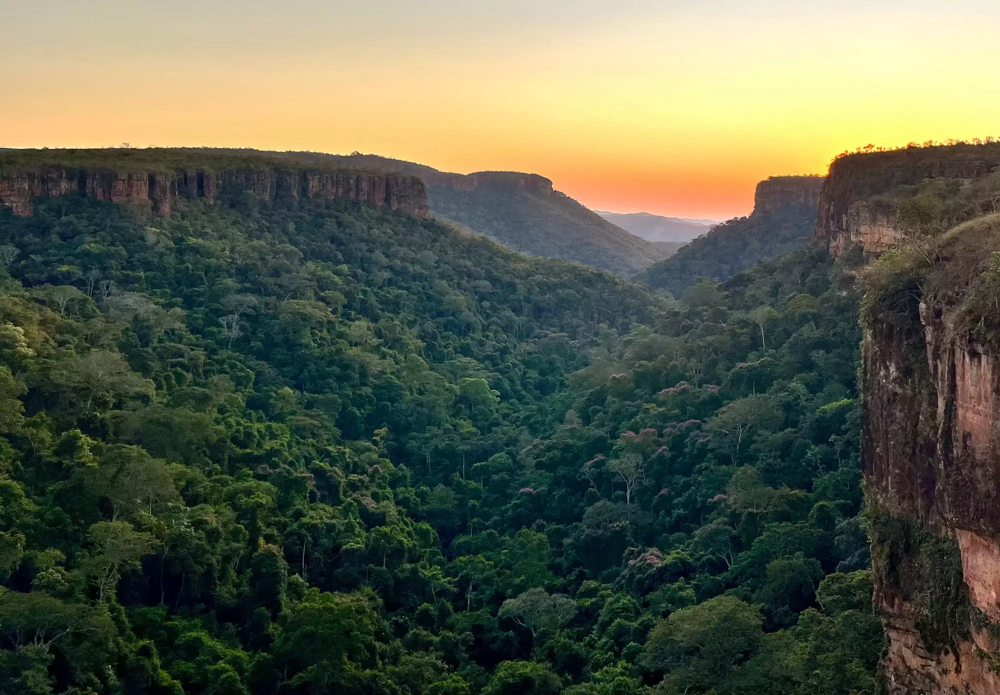 Chapada is known for its landscapes, including vast plateaus, steep cliffs, waterfalls, caves, and unique rock formations. The region is unusually rich in biodiversity, blending ecosystems from the Amazon, Cerrado (typical Brasilian forest Savanna) and Pantanal. The forest is also less tall than in the amazon, which makes it much much easier to see birds.