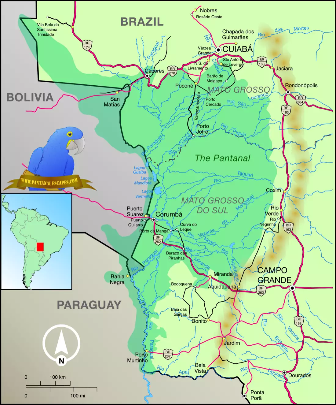 The only road that goes through (a part of) it, is the transpantaneira from Poconé to Porto Jofre.
